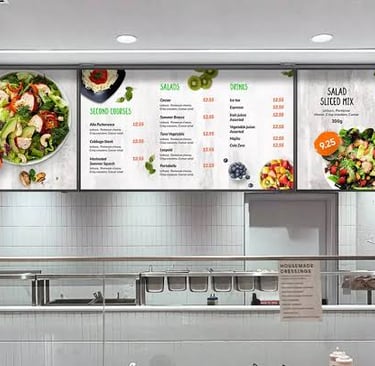 Custom TV digital and printed menu boards designed for clear pricing, easy updates, and a clean, professional look.